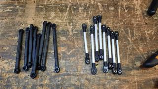 Jako że zostałem zbesztany ze nie posiadam scaleda to nie bylo innej opcji i kupilem skita MST CMX. Na te chwile podwozie poskladane zgodnie z instrukcją. Panewki zamienione na łożyska.Oryginalne plastikowe linki zastąpiłem linkami własnej produkcji z pręta m3 i rurki amelinowej. Ponizej to co bedzie w srodku.