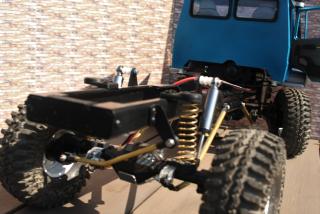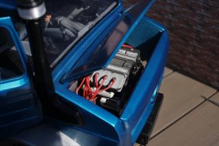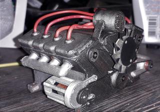 Powoli do przodu. Karoseria zamontowana, Drzwi otwierane i maska zrobione, Aby pod maską nie świeciła goła elektronika to zaprojektowałem silnik wewnątrz którego ukryty jest regulator i BEC.