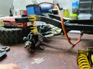 mocowanie tylnych linków i mocowanie drążka panfharda na moście gotowe, mocowanie przednich amortyzatorow na moście także