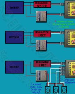 Znalazłem taki schemacik jak podłączyć kilka serw. I jeszcze jedno pytanko czy wystarczy bec 3A, coś takiego jak stosuje Gorg, lub Bednar.