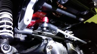 Na drugim zdjęciu widać też że przerobiłem drążek skrętu przekładając rodenda pod uchwyt na c-hubie żeby nie obcierał o opone, ale wtedy pojawia się problem bo zwiększa się kąt pod którym rodend jest ustawiony i przy skręcie kół sama końcówka haczy i stawia duży opór dlatego założyłem zagięte rodendy z zestawu HPI służące do zrobienia 4 linka.
