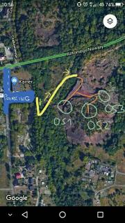 Samochody zaparkowane na terenie zaznaczonym na niebiesko. Z aut idziemy tak jak żółta kreska wzdłuż hali garazowej (mamy ją po prawej), przekraczamy niski murek, w prawo 50m, później nawrót w lewo i pod górkę, 300m prosto i skręcamy lekko w prawo w scieżkę prowadzącą ostro pod górę do miejsca naszego spotkania. Po wejściu na haude idąc w prawo wzdłuż urwiska dojdziemy do miejsca, w którym planuje pierwsze OeSy Wink