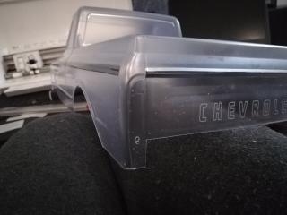 Ale liczy się zabawa! Znalazłem przy okazji ciekawy patent na chromy. Użyłem do tego starej folii do przyciemniania szyb samochodowych z efektem lustra weneckiego. Wyciąć w czymś takim cokolwiek na ploterze również wymaga pewnej sztuczki. Natomiast aby uniknąć odbarwień podbiłem dodatkowo czarną folią lekko ją wysuwając. Całość jest klejona od spodu. Przy odpowiednim przycięciu daje całkiem fajny efekt już na starcie: