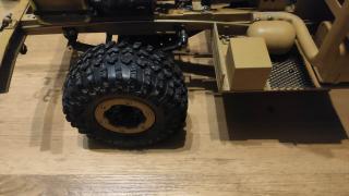 Zabudowę wywrotki wykonuje z twardego HIP--su. Całość pomaluje podkładem epoksydowym  oraz wojskową farbą  w sprayu (kolor COYOTE).