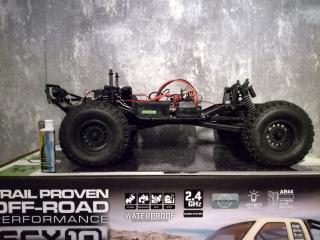 przestawiłem wieżyczki amortyzatorów z tyłu oraz zamieniłem miejscami sprężyny tył-przód. Maja różną twardość więc inaczej zachowują się pod ciężarem. Efekt ogólny to delikatnie lepsza praca amorków i lekko obniżony środek ciężkości w porównaniu do oryginału.