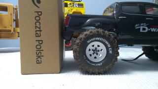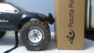 Koła mają 117/48 mm. Porównywałem ostatnio model do jeepa comanche na axialu. Mój jest kilka mm krótszy i kilka mm szerszy, wielkość opon robi swoje Smile