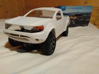 Mając dane z katalogów, wtedy jeszcze pierwszych zdjęć prototypu pickupa II generacji Dustera zaczął robić samemu karoserię z spienionego PCV.