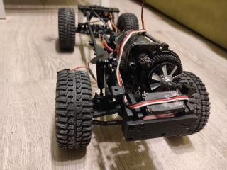 Zmontowałem zawieszenie, silnik, rozdzielacz, wlot na masce, wiatraczek Wink , dopasowałem nadwozie do podwozia, serwo skrętu na miejscu.