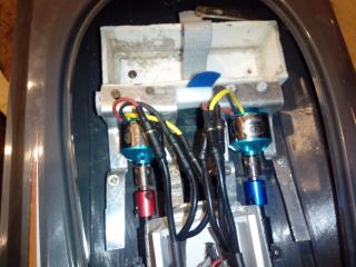 Po roku zechciało mi się popływać. Pomyślałem więc że może zrobić kolejną modyfikację. Wrócę do dwóch silników ale już bezszczotkowych (1300 kV) i zostawię ster. Bezszczotki ogólnie mniej energii przerabiają na ciepło a jeszcze do tego outruunery lotnicze dobrze się chłodzą więc może obejdzie się bez chłodzenia wodnego. Do tego zastosowałem regulatory lotnicze bo łódki i tak nie mają wstecznego oraz BEC do serwa. Wszystko napędzane jest akumulatorem 3S 2200 mAh. Wystarcza na 20 minut pływania.